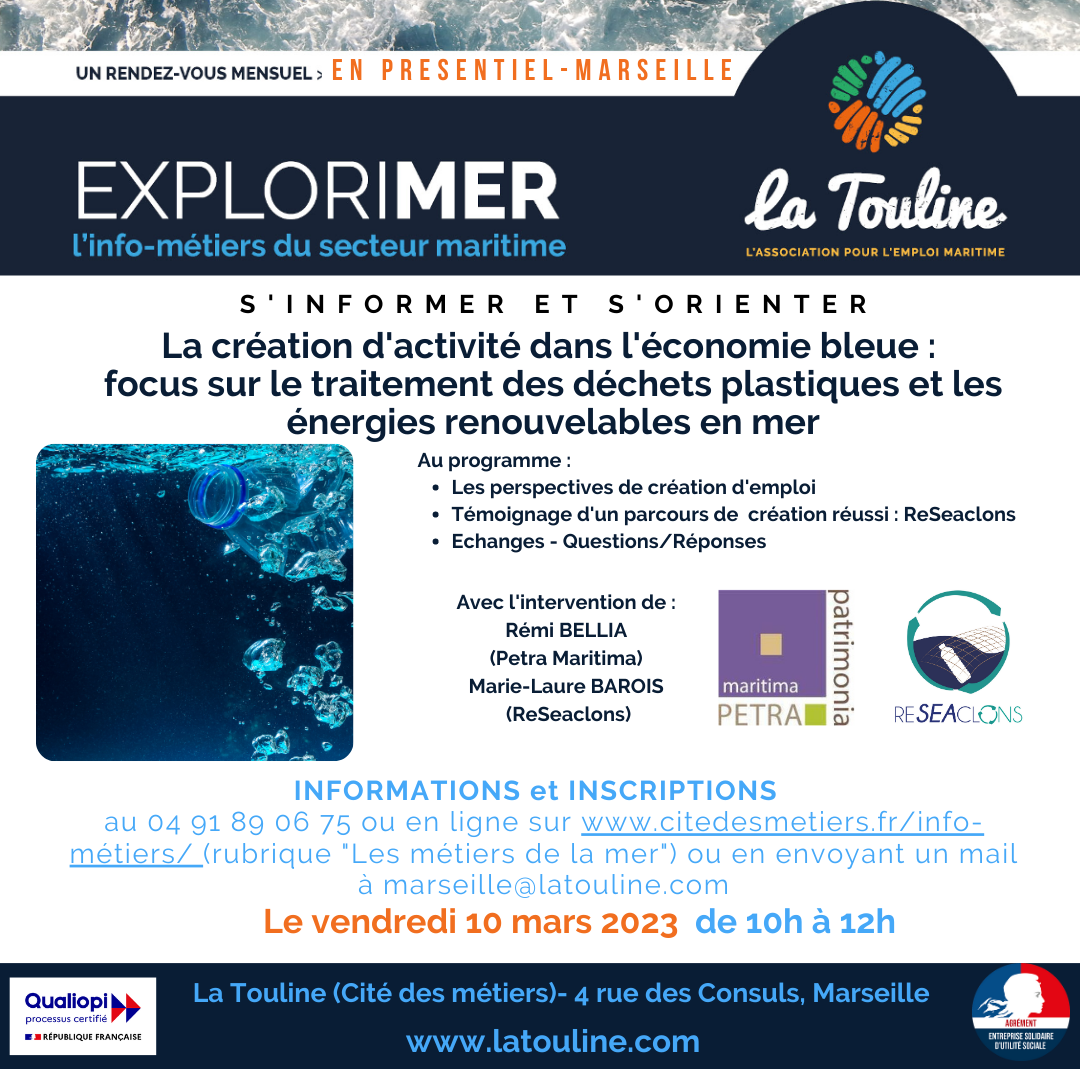 Le prochain rendez-vous ExploriMer, organisé par La Touline à la Cité des Métiers de Marseille et de Provence Alpes Côtes d'Azur aura pour thématique :
