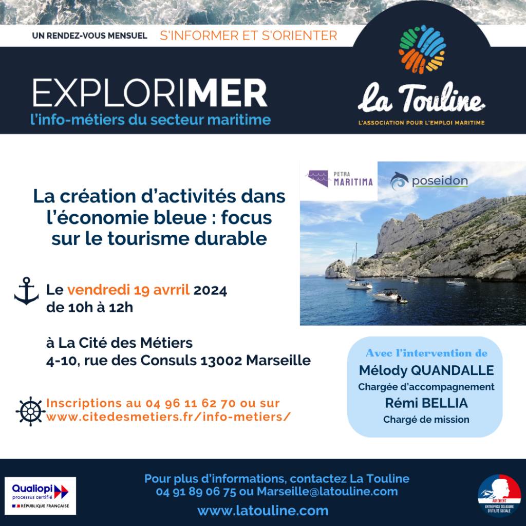 Le prochain rendez-vous ExploriMer organisé par La Touline à Marseille portera sur la création d'activités dans l'économie bleue.