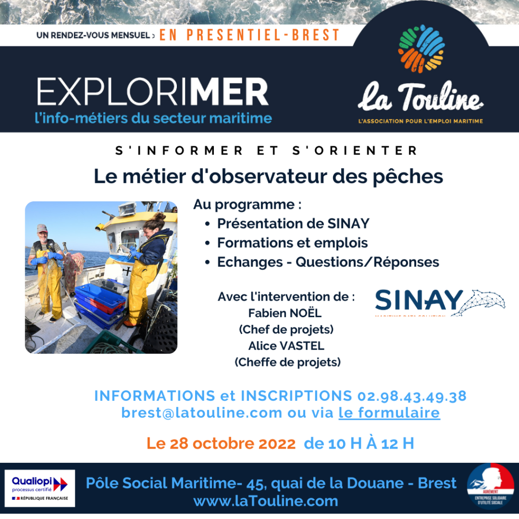 La thématique du prochain rendez-vous ExploriMer portera sur le métier d'observateur des pêches, en partenariat avec le bureau d'étude SINAY.