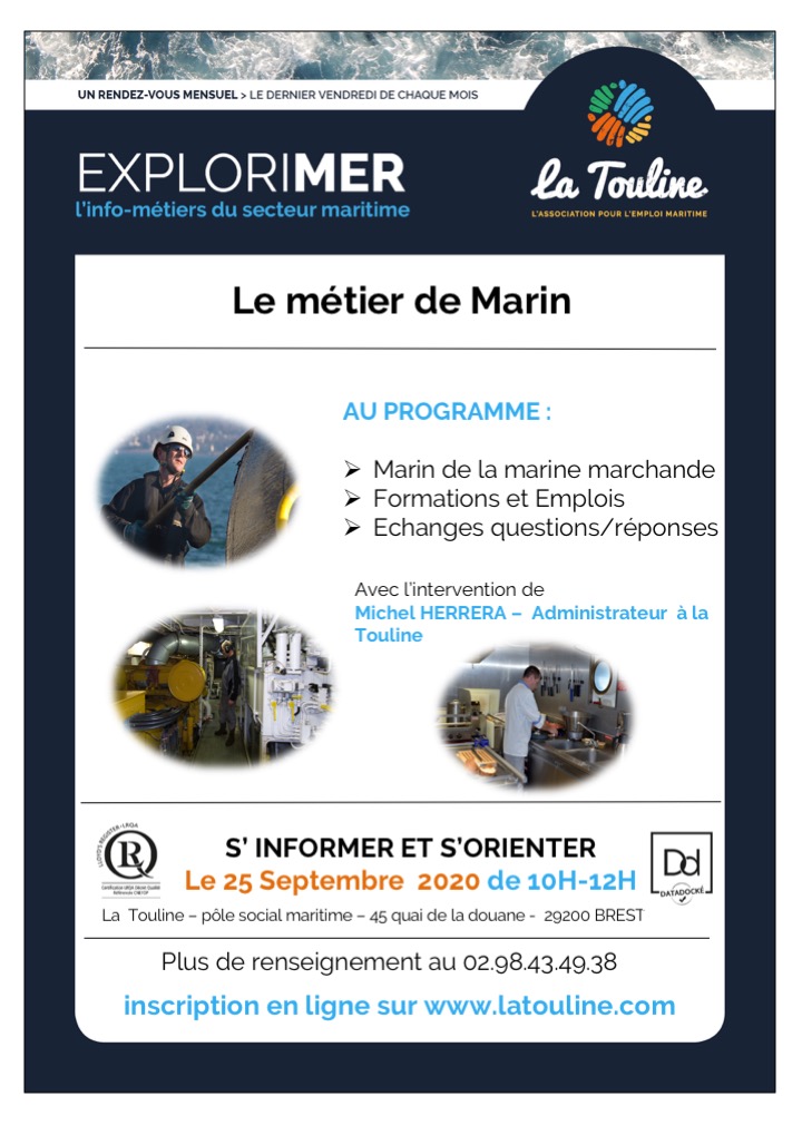L'ExploriMer de la rentrée est consacré au métier de marin avec l'intervention de Michel HERRERA, Administrateur de La Touline.