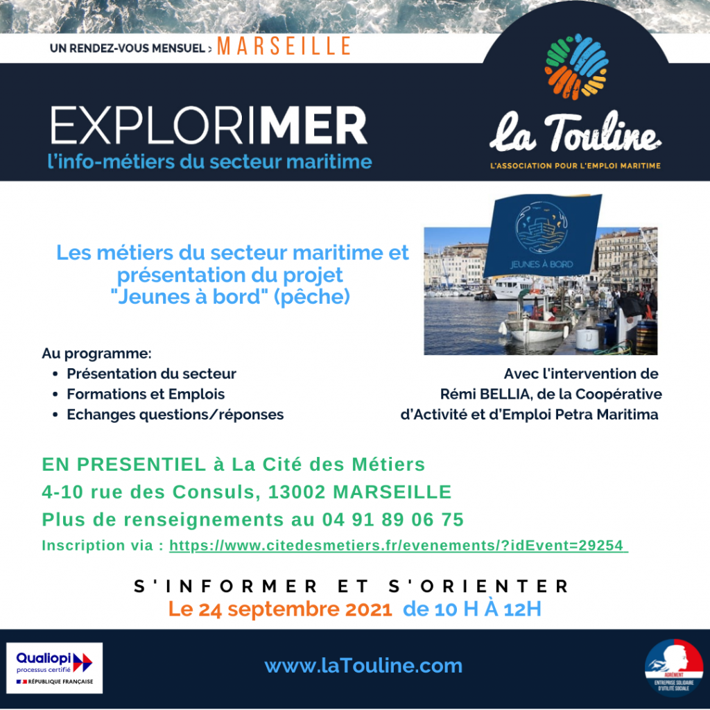 Cette info-métiers ExploriMer aura lieu dans le cadre du Mois de la Mer, organisé par La Cité des Métiers, où elle aura lieu.