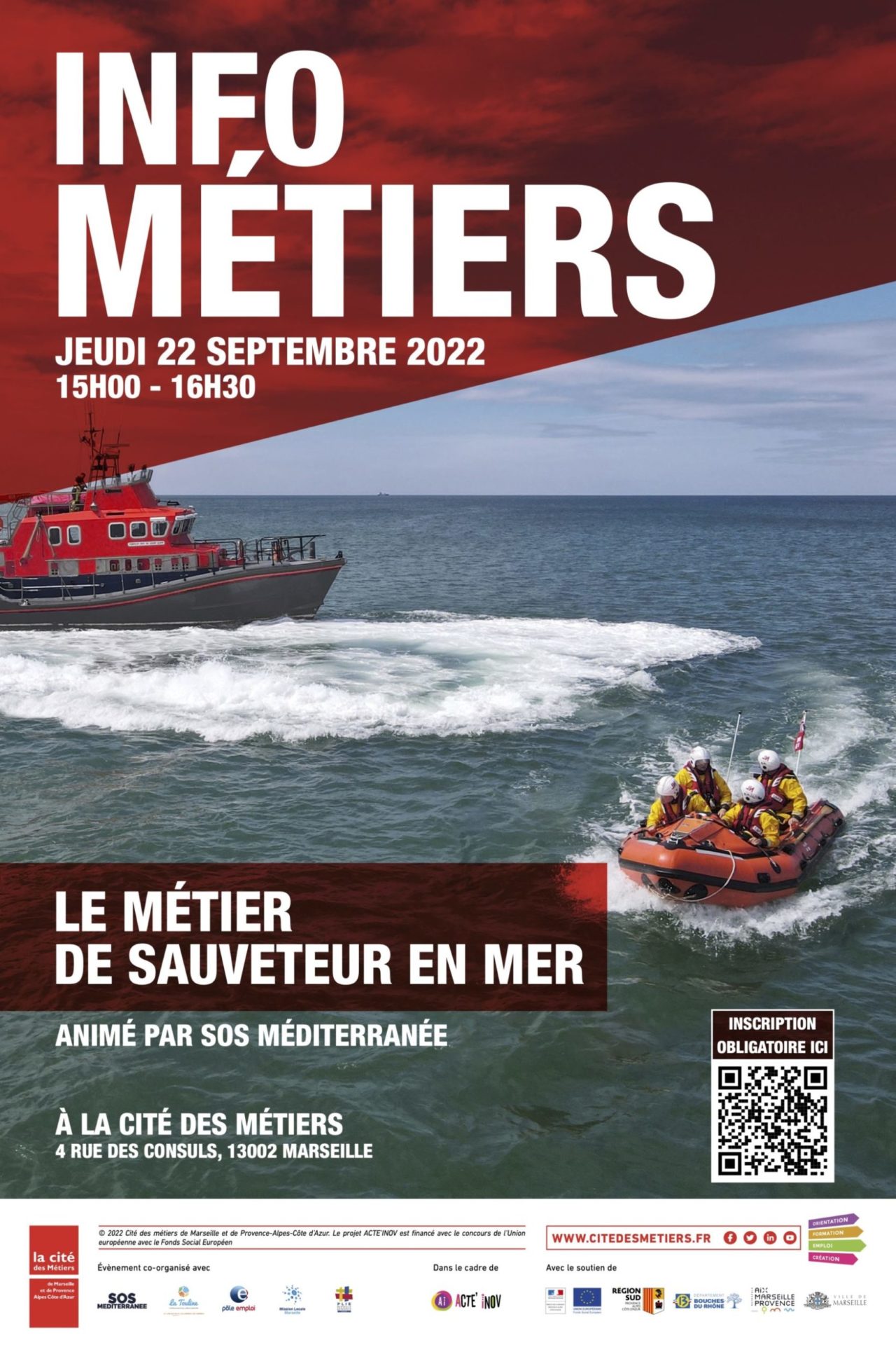 A Marseille, le mois de septembre est dédié à la Mer. Dans le cadre de la programmation du Mois de La Cité, en partenariat avec La Cité des métiers de Marseille et de Provence-Alpes-Côtes d'Azur , nous vous proposons une info-métiers dédiée au sauveteur en mer au sein de SOS Méditerranée