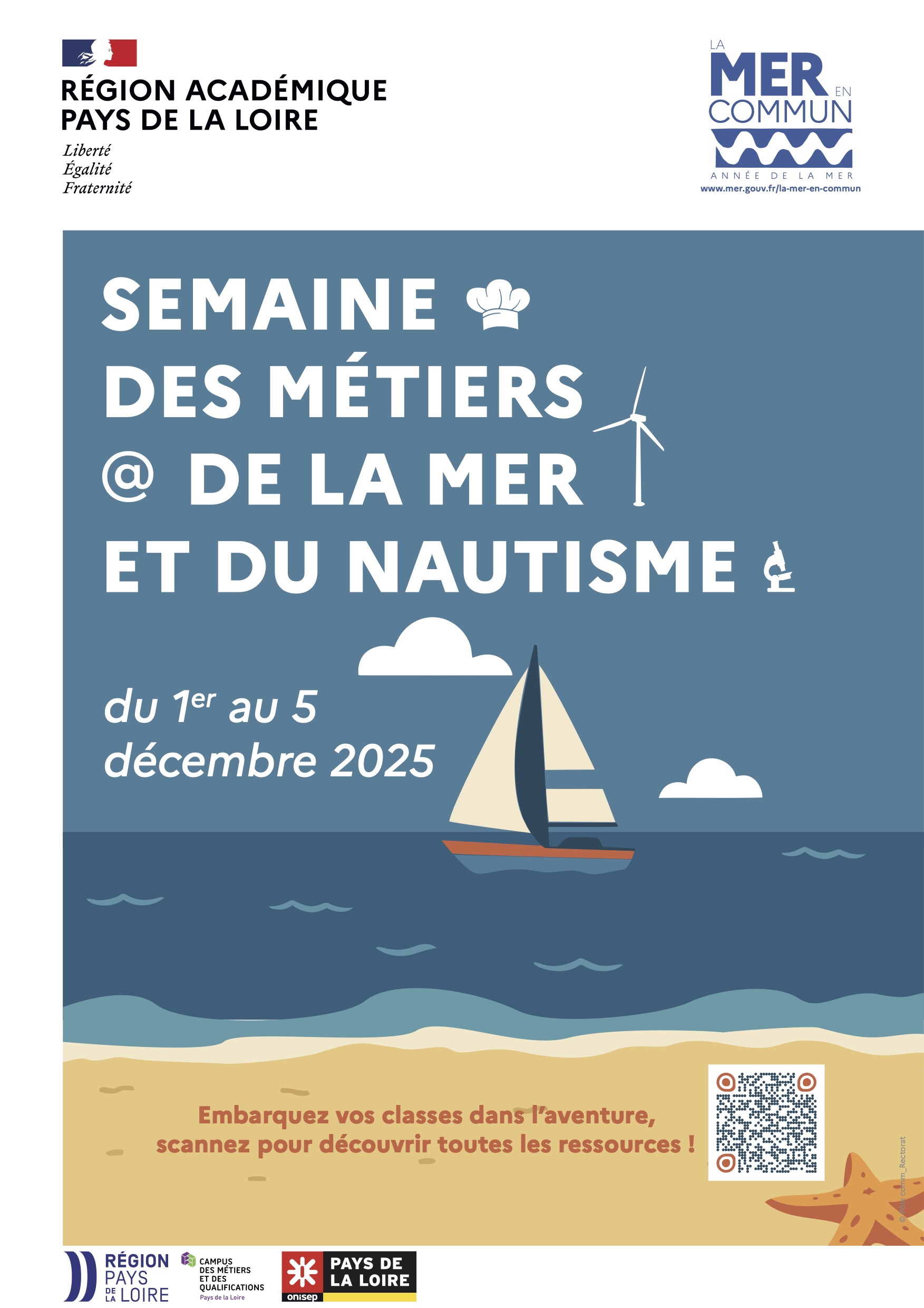 Du 1er au 5 décembre, Académie de Nantes et ses partenaires ont prévu différentes manifestations à destination des collégiens et lycéens 👩🦰 👱♂️ pour leur faire découvrir le potentiel qu'offrent les métiers de la mer 🌊 .